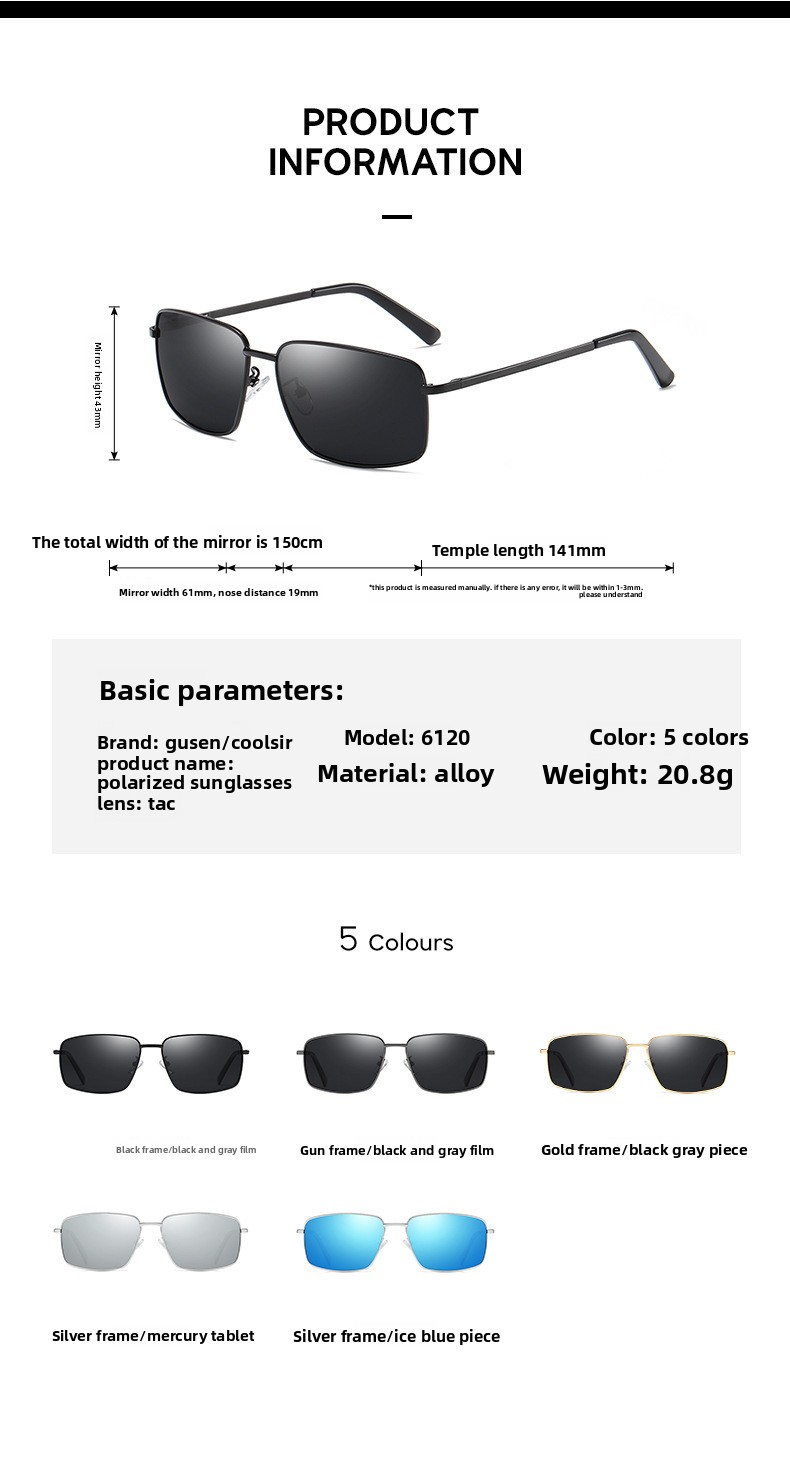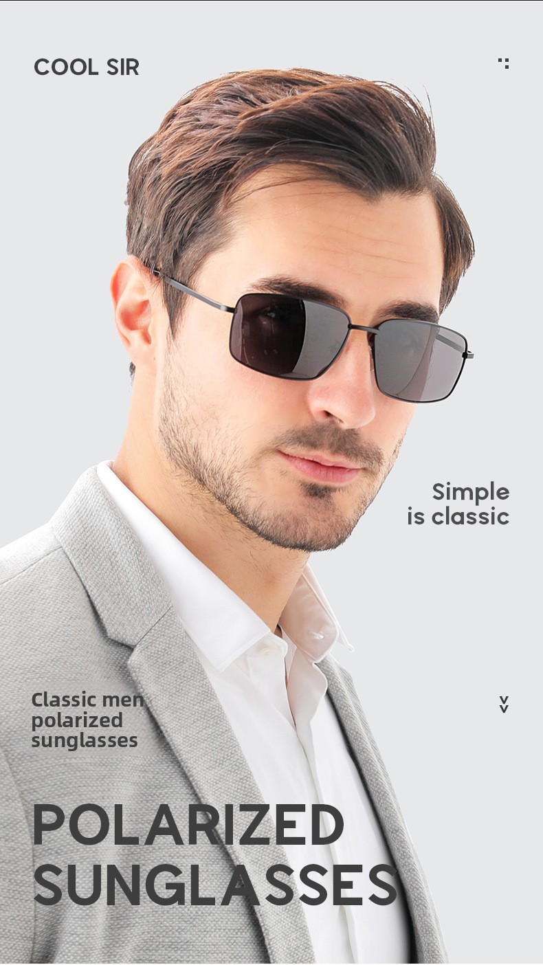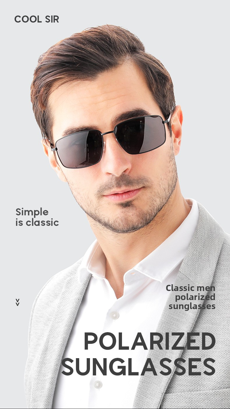 Men's single-bridge small square elastic temple polarized sunglasses for driving